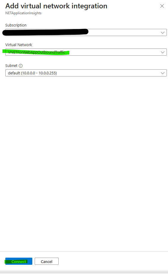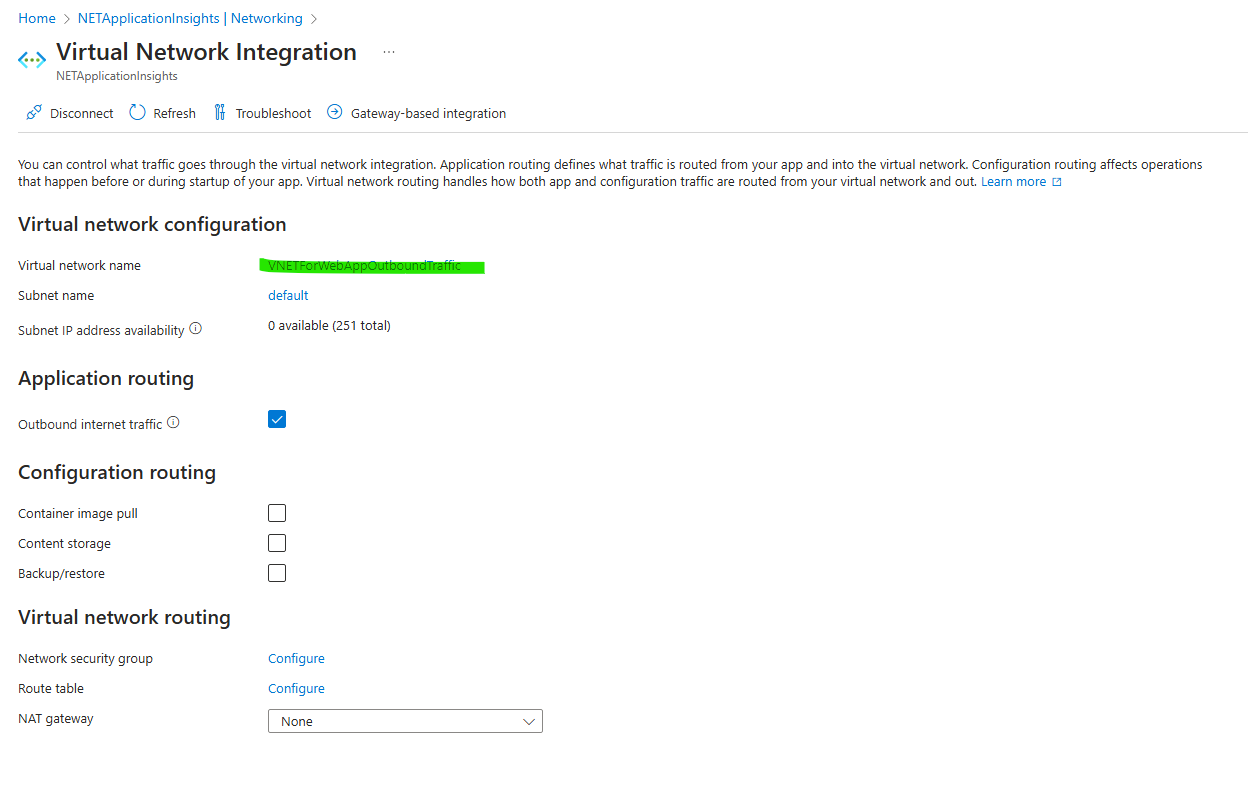 Enable VNet Integration in the Web App's outbound traffic configuration.