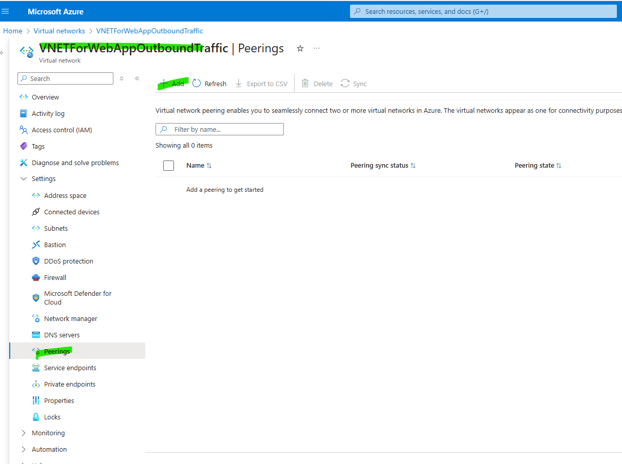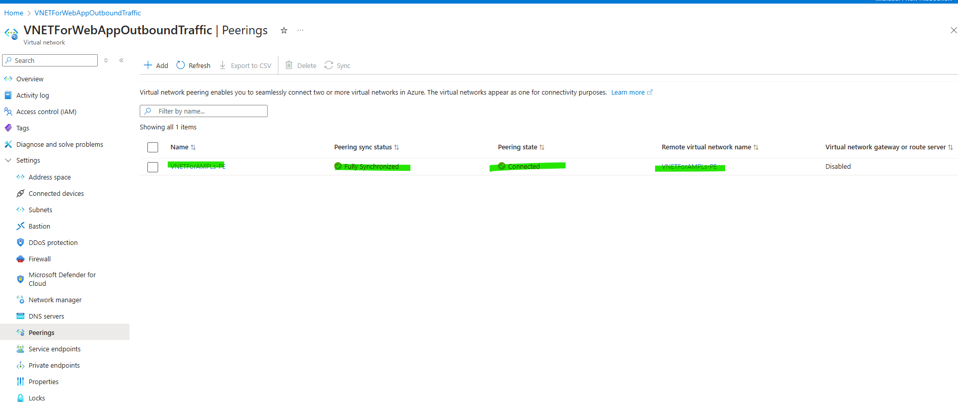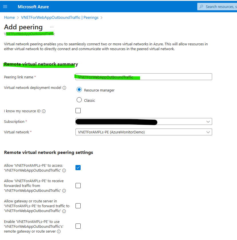Create VNET Peering between the Web App Outbound traffic VNET and the VNET configured with AMPLs and PE.