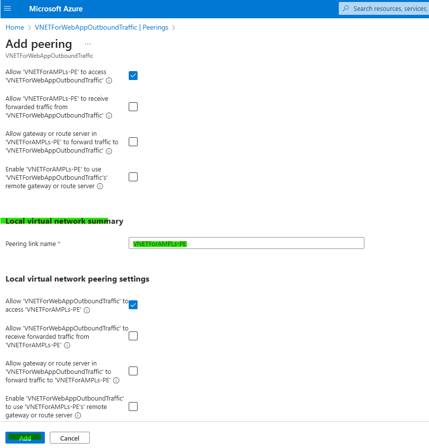 Hub and Spoke Networks - If requirement is to connect Web App Outbound traffic from VNET which is different than VNET configured for AMPLs configured PE.
